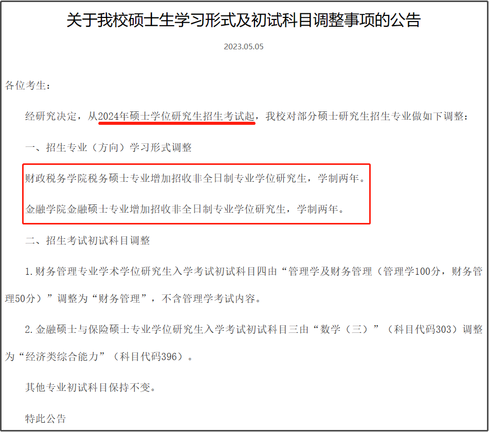 金融学院金融硕士专业增加招收非全日制专业学位研究生,学制两年。
