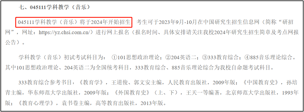 045111学科教学(音乐)将于2024年开始招生。