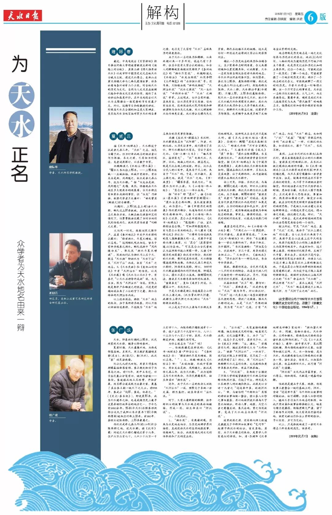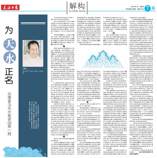 以上,只是粗疏地谈了一些对天水得名三种由来的浅见,供参考。 (2019年元月7日 匆稿)
