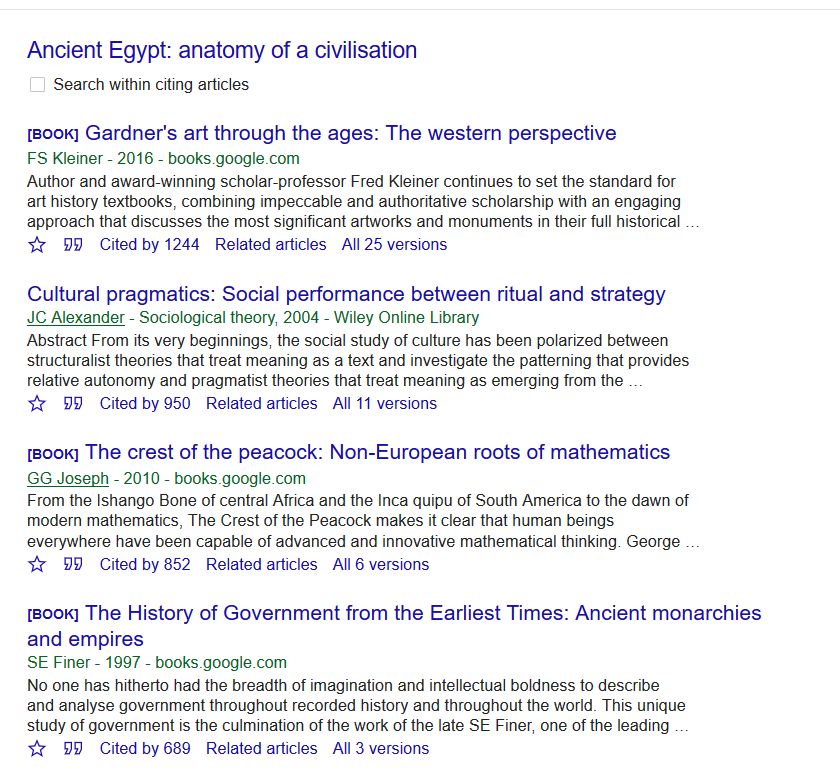 谷歌学术的搜索列表会显示文章被引用的情况。你可以从搜索结果页顺藤摸瓜,点进其他引用了这篇文章的论文。这样能对别人怎么看这篇文章有个了解,还能看出引用者的研究方向和目的是否和你的一样。反向搜索有两个好处,除了能找到新的信息源,你还能根据被引用信息判断某篇文章是否适合出现在你的研究里。