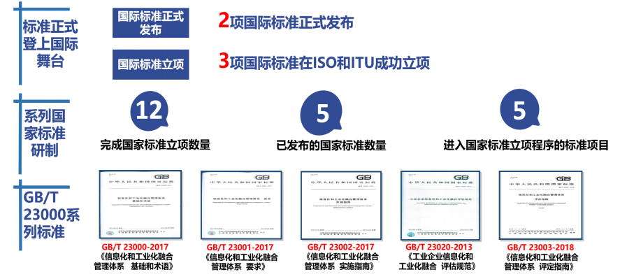 为贯彻落实党中央、国务院有关决策部署,多年来,工业和信息化部立足新发展阶段,深入推进两化深度融合,批准《信息化和工业化融合 数字化转型 价值效益参考模型》(GB/T 23011-2022,简称《数字化转型 价值效益参考模型》)、《信息化和工业化融合管理体系 供应链数字化管理指南》(GB/T 23050-2022,简称《供应链数字化管理指南》)、《信息化和工业化融合管理体系 生产设备运行管理规范》(GB/T 23022-2022,简称《生产设备运行管理规范》)和《信息化和工业化融合管理体系 生产设备运行绩效评价指标集》(GB/T 23023-2022,简称《生产设备运行绩效评价指标集》)4项国家标准正式发布,立足全新发展阶段,深入推进两化深度融合、加速数字化转型,将对加快新型工业化发展具有重要意义。