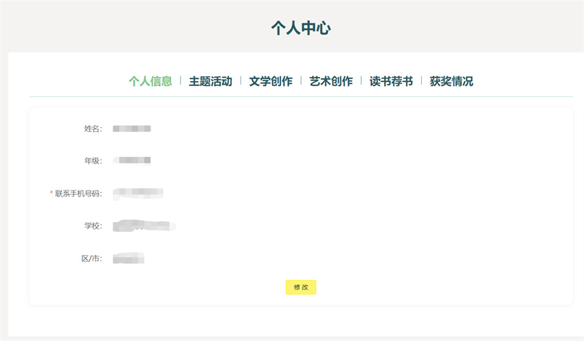 4.用户提交后可随时修改联系手机号,姓名、年级、学校、所属区等信息由系统直接读取学籍信息,用户无权进行修改。