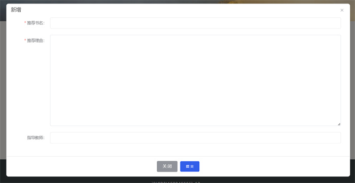 8.用户若需要投稿读书与荐书活动,选择“读书荐书”菜单,点击“我要投稿”新增作品,输入作品标题和作品内容后点击提交,指导教师为非必填项。提交后用户也可随时点击操作按钮进行作品查看、修改或删除