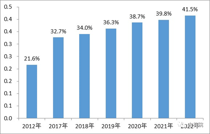 图表 3:2012年-2022年我国数字经济增加值规模占GDP比重 单位:%