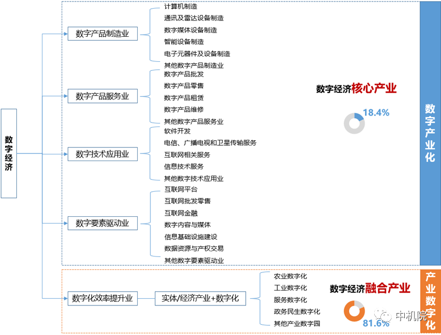 数字经济可分为五大类,一是数字产品制造业,二是数字产品服务业,三是数字技术应用业,四是数字要素驱动业,五是数字化效率提升业。
