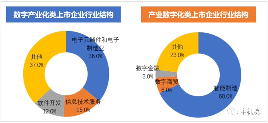 从细分行业来看,2022年,数字产业化上市企业中,电子元器件及设备制造占比最高,达到36.0%,其次是信息技术服务和软件开发,比例分别为15.0%和12.0%。2022年,产业数字化上市企业中,主要集中分布在智能制造行业,比例为68.0%。