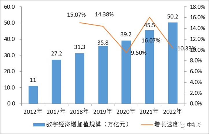 图表 2:2012年-2022年我国数字经济增加值规模单位:万亿元,%